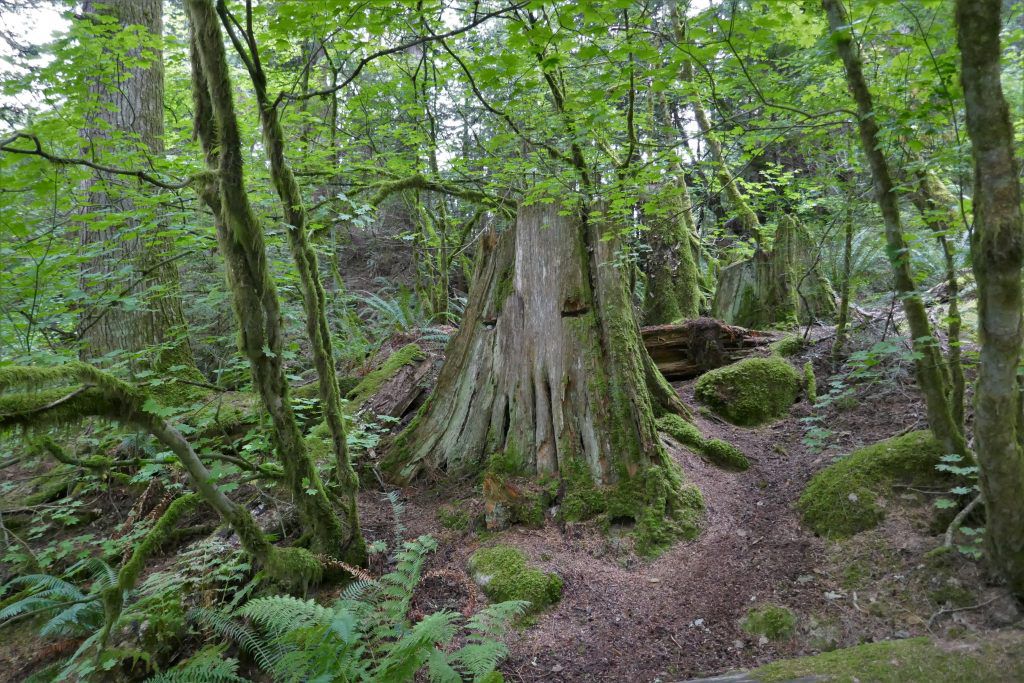 Tijdens het rijden vallen er af een toe een paar druppels naar beneden. In de buurt van Squamish maken we een stop bij een uitzichtpunt waar je eagles kan spotten. We hebben inmiddels al een heel aantal gespot deze reis, maar hier zitten ze niet. We rijden snel weer verder, want we willen nog een stop maken bij de Shannon Falls in Squamish. De waterval zelf is niet zo mooi als de Brandywine, maar het bos waar je doorheen loopt is wel prachtig. Er staan grote, oude bomen begroeit met mos en veel varens er omheen. Het lijkt een beetje op Giant Cedars in Revelstoke NP.