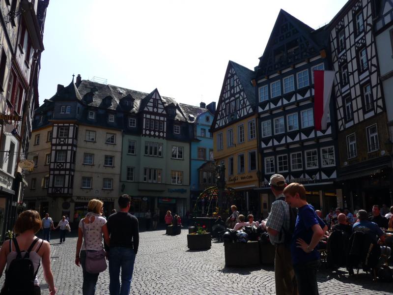 Terug in de binnenstad van Cochem kijken we onze ogen uit naar de vele mooie vakwerkhuizen