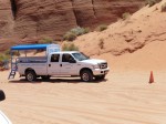 We gaan met een monstertruck naar Antelope Canyon. Gaaf hoor om zo door het mulle zand te crossen.